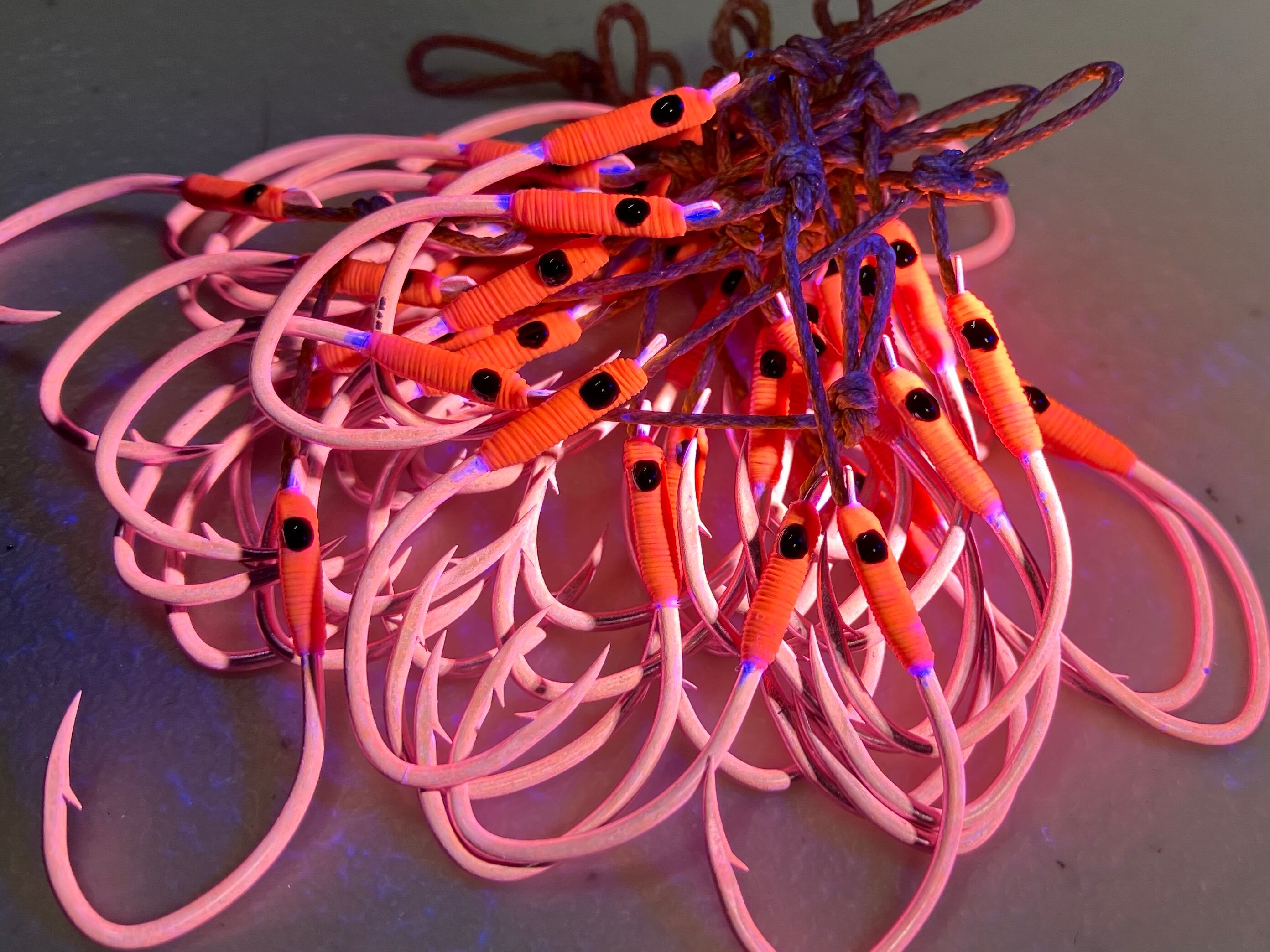 使用針:大アジ針15号 ケイムラピンク 叩,先打,丸軸,フッ素コーティング